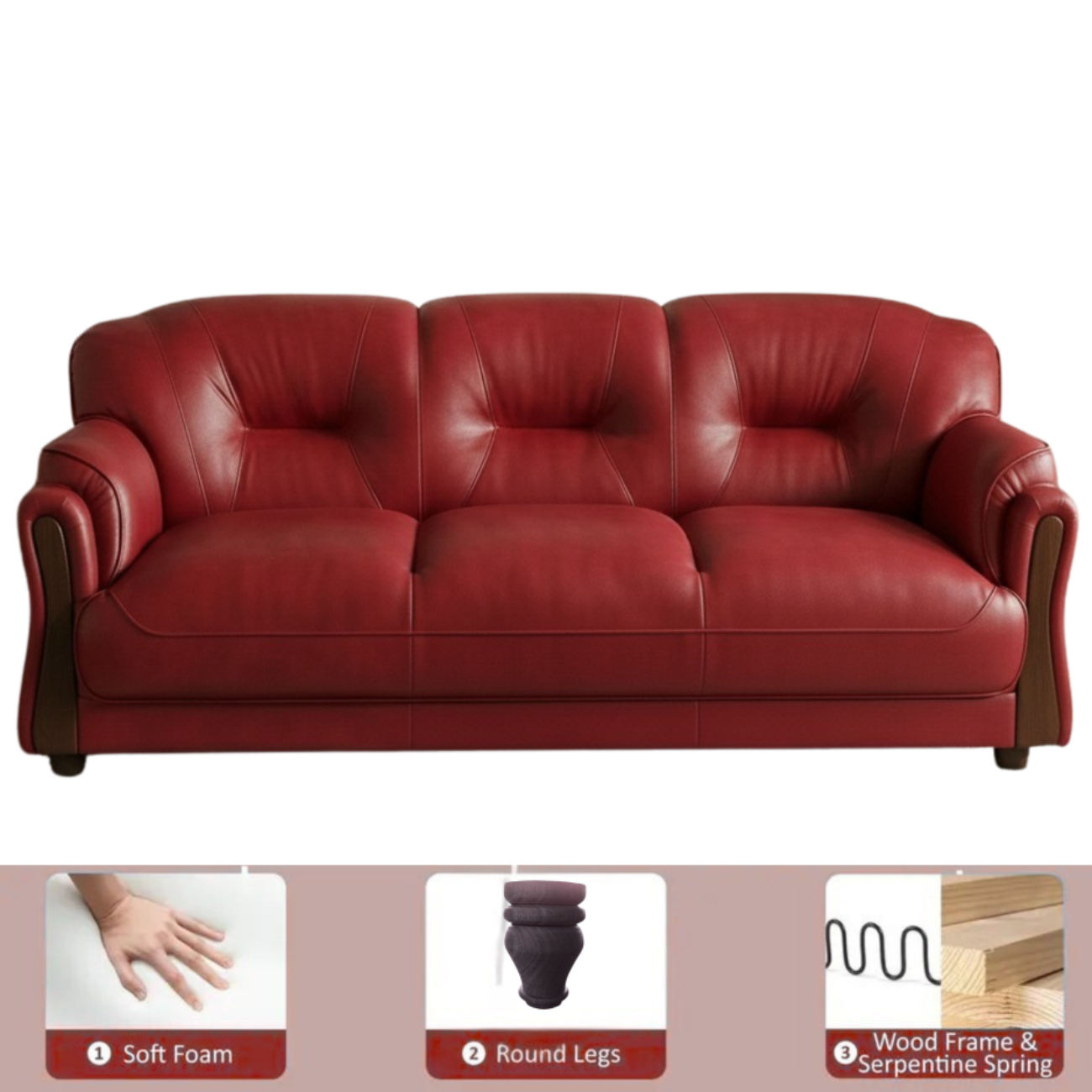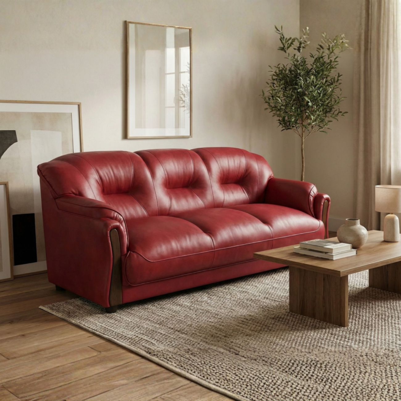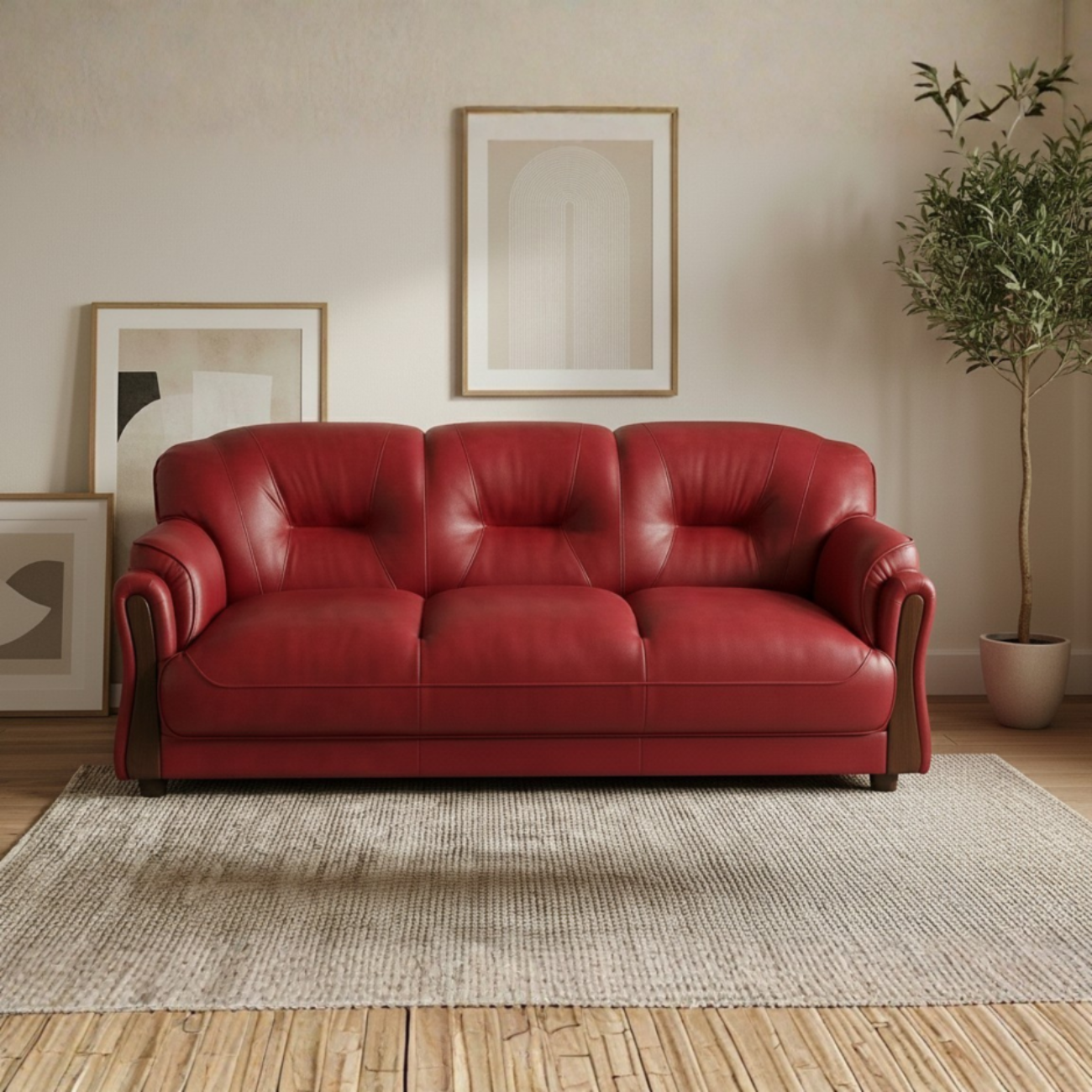 Introducing the Gaaoo Premium Red Leatherette 3-Seater Sofa — a perfect blend of luxury, comfort, and modern aesthetics. Crafted with high-density cushioning, a solid wood frame, and premium leatherette upholstery, this sofa brings a bold and stylish look to any living room. The curved armrests, soft-touch upholstery, and ergonomic backrest ensure superior comfort while enhancing home décor. Ideal for modern apartments, offices, and family living spaces.