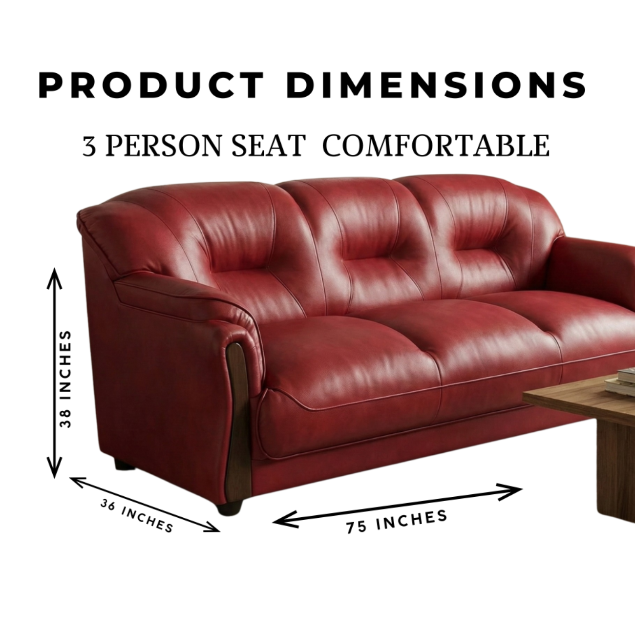 | Special Feature | Elegant luxury leatherette finish Soft, thick cushioning for maximum comfort Ergonomic backrest with premium tufting Stylish curved armrests with wooden panel detailing Durable wooden frame construction Easy maintenance & stain-resistant surface |