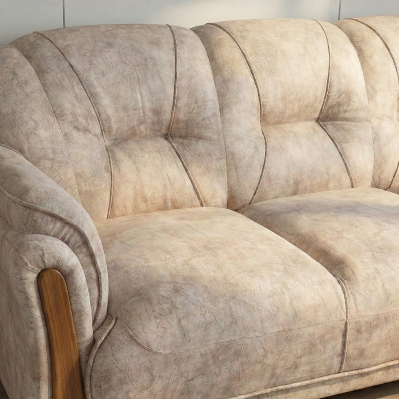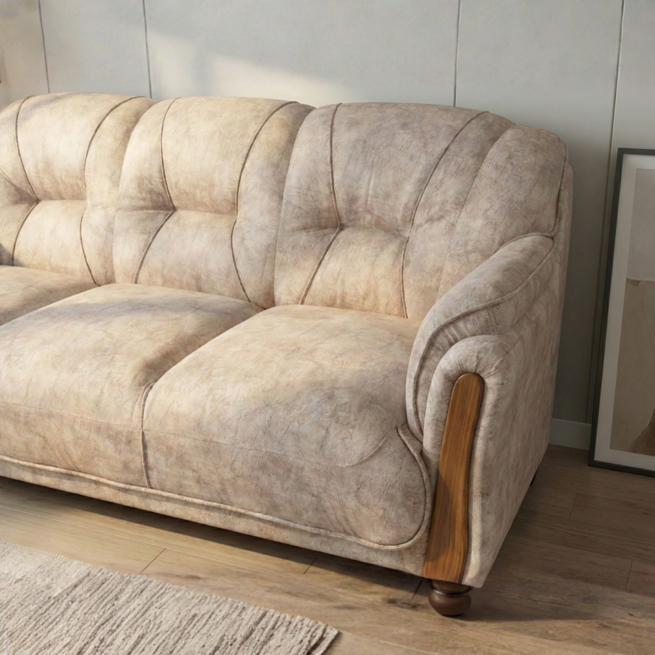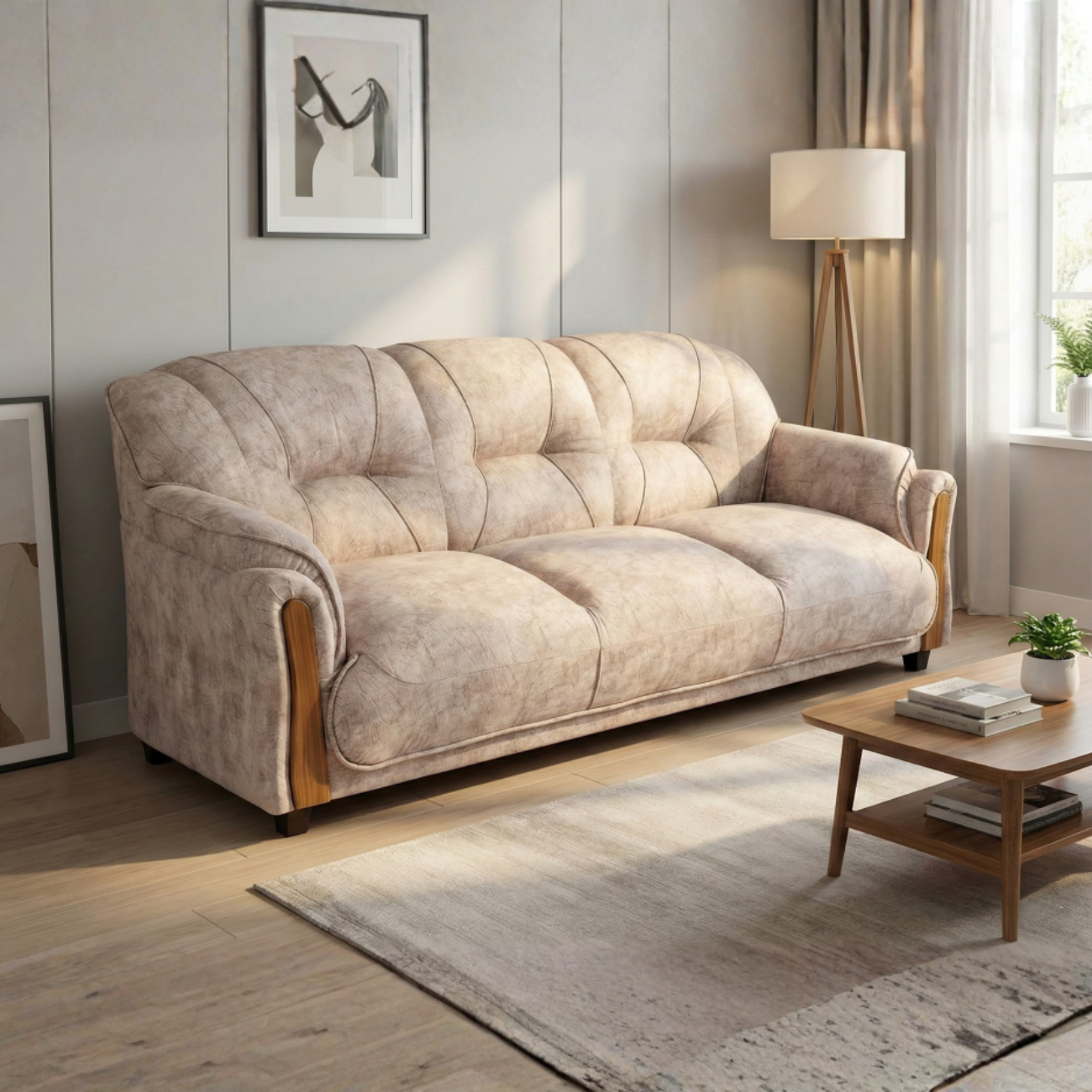 Gaaoo Premium White Marble-texture 3-seater Fabric Sofa – Beige Textured Finish