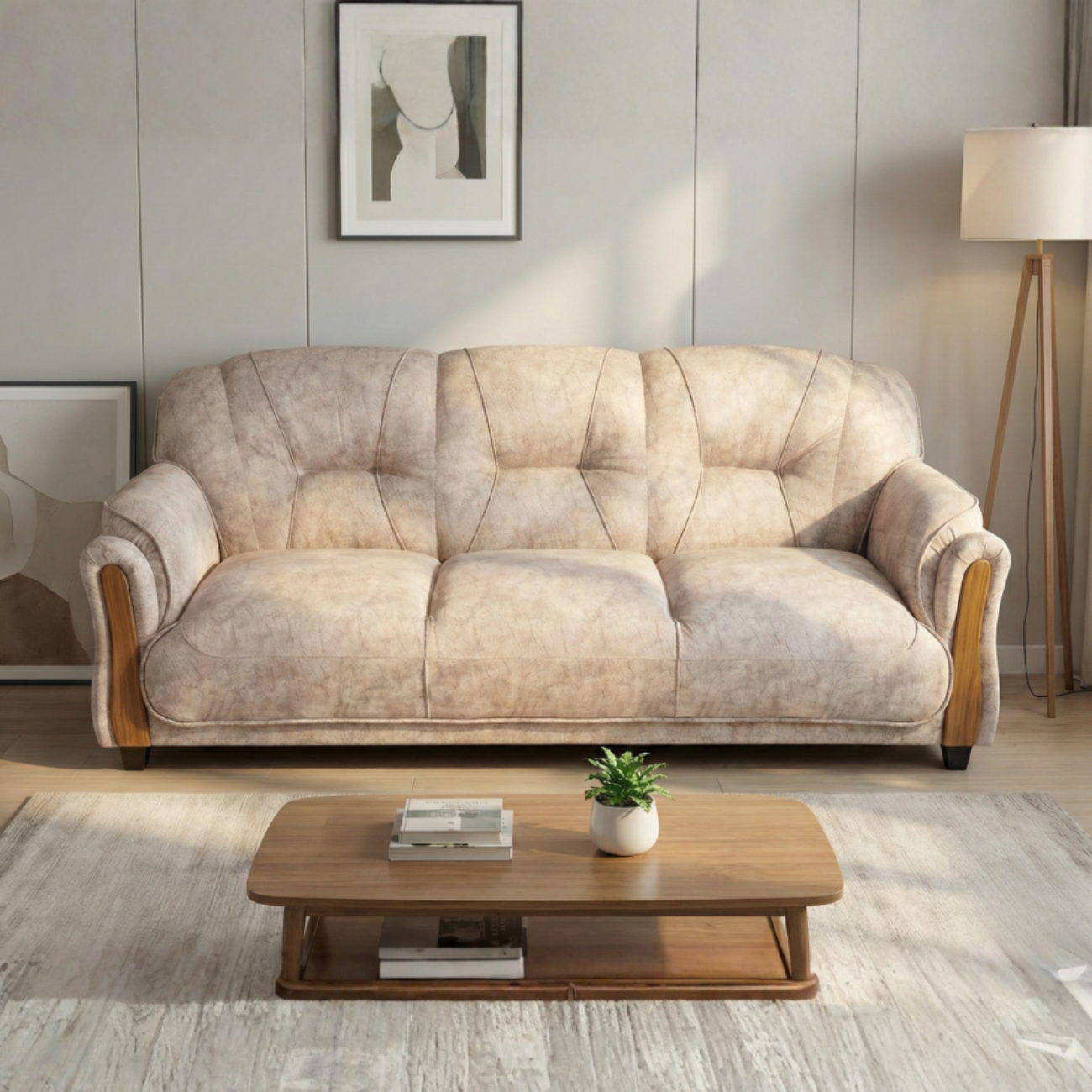 Experience premium comfort with the Gaaoo 3-Seater Fabric Sofa, designed with a stylish beige textured finish and elegant curved arms. Crafted with a strong solid-wood frame and high-density soft cushions, this sofa ensures superior durability and long-lasting comfort. Ideal for living rooms, offices, and lounge areas, its 75-inch width provides ample space for three adults. With a refined design and high-quality upholstery, it enhances the beauty of any interior space.